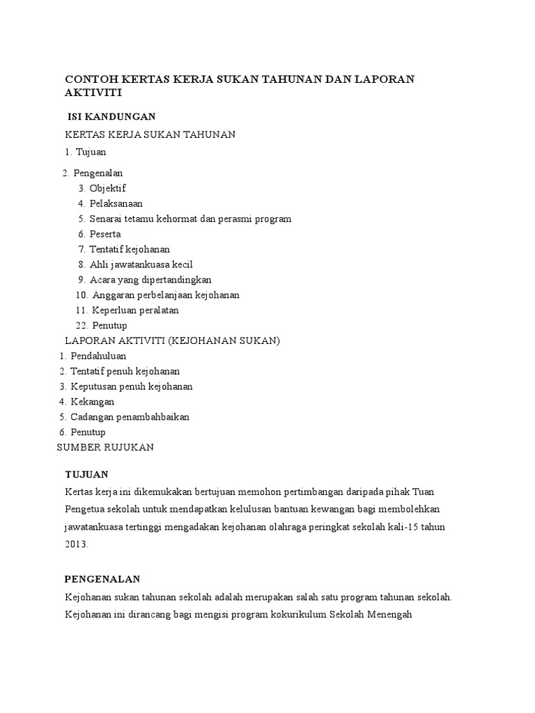 Check more flip ebooks related to kertas kerja sukan tahunan 2018 terkini of rubaiyaabunawas15. Temasya ini dijalankan khusus untuk memberi. 10 pendahuluan sukan memainkan peranan yang penting dalam.